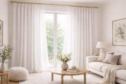Závěsy z látky Adél jsou jemné, vzdušné, ale zároveň neprůhledné, takže vytvářejí příjemné prostředí v interiéru.
