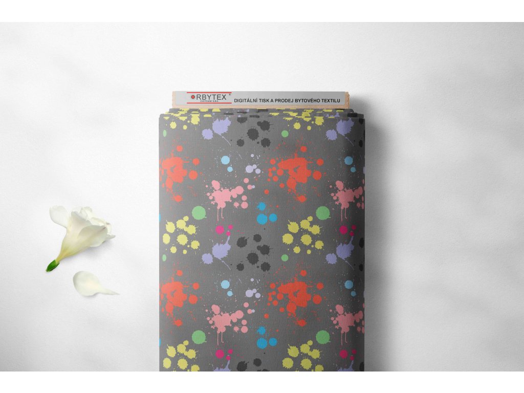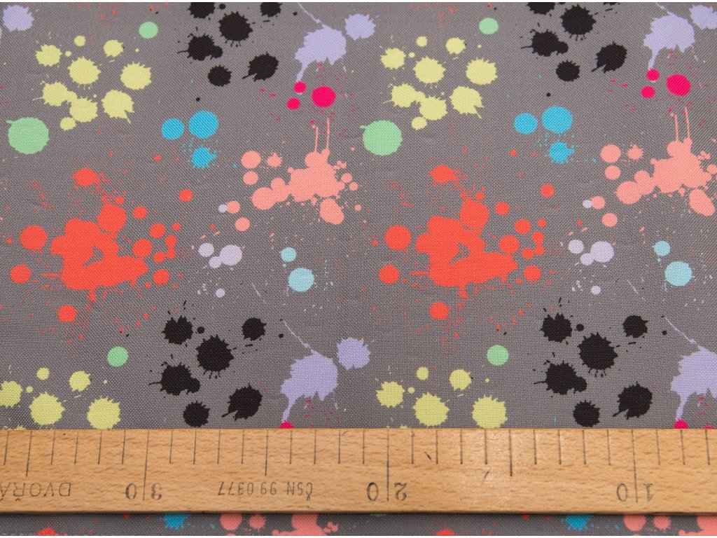 Kočárkovina metráž šíře 160 cm, nepromokavá látka, vzor kaňky na šedé