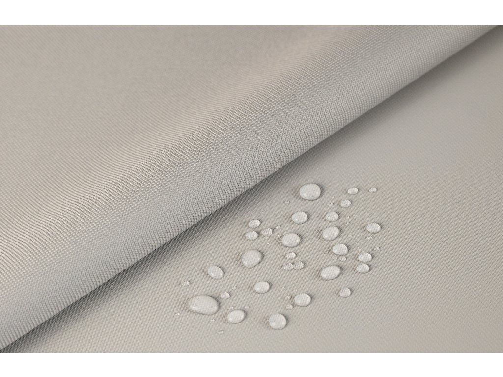 Jednobarevná kočárkovina / slunečníkovina je oboustranná látka s voděodolným zátěrem. Tento typ nepromokavé látky můžete také najít pod označením celtovina, batohovina nebo Oxford.
