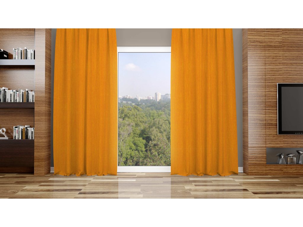 Sleva (set 2 kusy) - zatemňovací závěs žíhaný oranžový - v.180cm kroužky