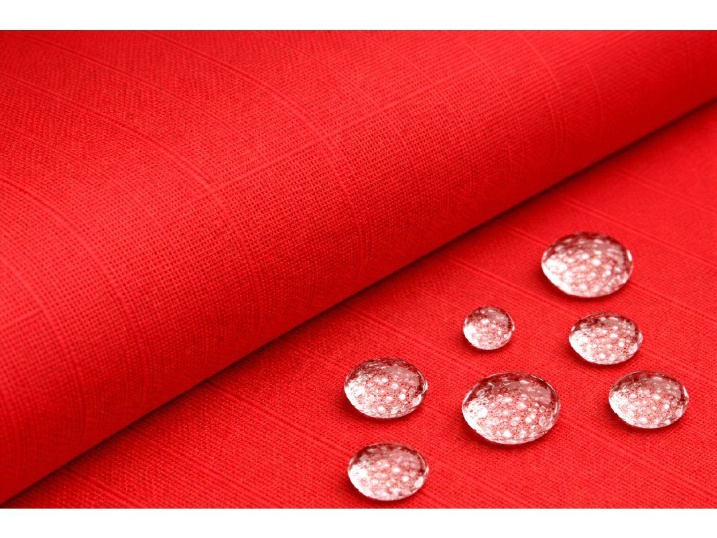 Červená kočárkovina / slunečníkovina je oboustranná nepromokavá látka.