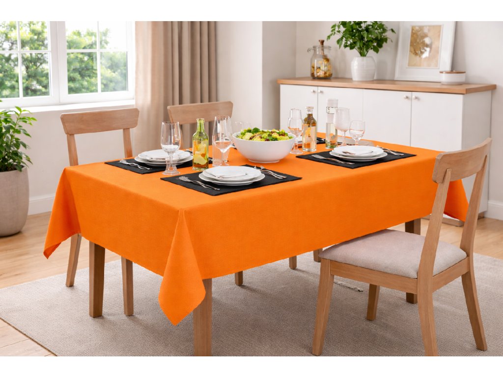 Jednobarevný teflonový ubrus doporučujeme doplnit napronem (menší středový ubrus 80 x 80 cm) nebo štolou (středový pás, běhoun). Vzorované ubrusy různých rozměrů naleznete na kategorii Ubrusy teflonové - vzorované.
