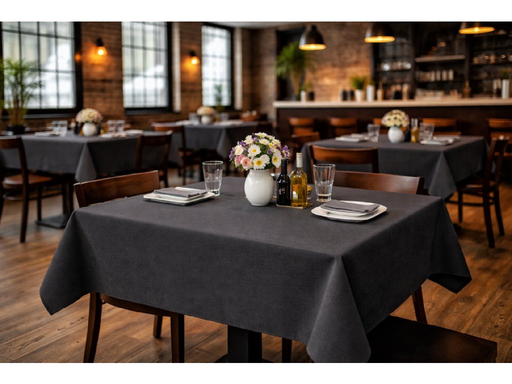 Moderní šedý teflonový ubrus dodá interiéru domácnosti i restaurace elegantní a nadčasový vzhled. Kvalitní výroba v naší firmě, precizní zakončení ultrazvukem, rychlé dodání a možnost šití...