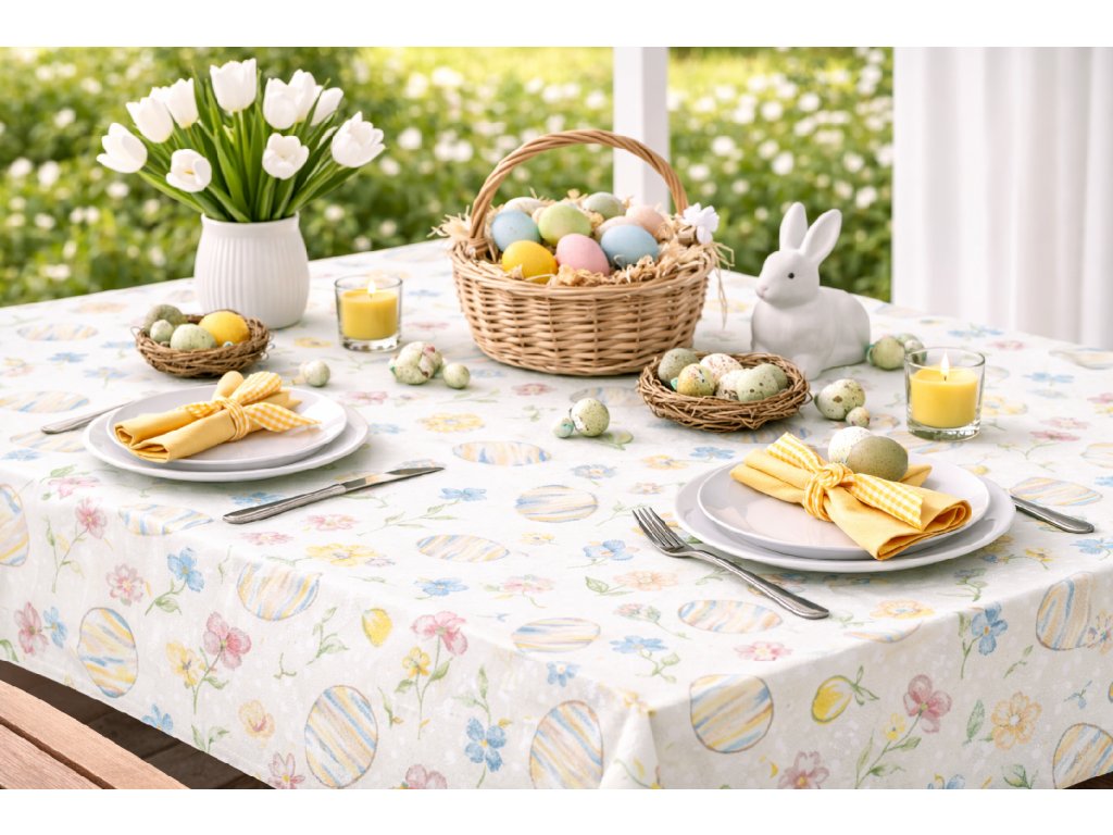 Velikonoční teflonové ubrusy přinesou do interiéru svěží jarní atmosféru, kdy se příroda probouzí a domov se plní barvami. Speciální teflonová úprava zajišťuje vodoodpudivost a ochranu proti skvrnám – rozlité nápoje či nečistoty snadno setřete bez nutnosti častého praní. Ubrusy tak mají nižší náklady na údržbu, dlouhou životnost a stále reprezentativní vzhled. Samozřejmostí je vysoká stálobarevnost, díky které si jarní motivy zachovají svěžest i po opakovaném praní.