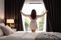 Žíhané black out závěsy jsou proto oblíbené nejen v domácnostech, ale také v hotelích a ubytovacích zařízeních.