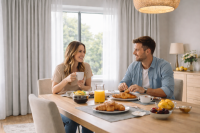 Black out materiál zastíní až 90 % světla, čímž vytváří příjemné prostředí pro odpočinek i spánek. Zároveň pomáhá omezovat tepelné úniky, což přispívá k lepší tepelné pohodě v místnosti.