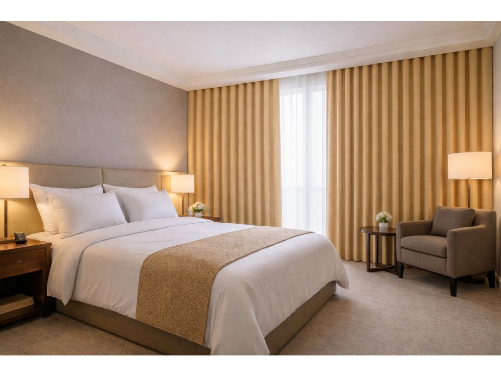 Díky oboustrannému provedení mají závěsy jednotný vzhled z obou stran, což je ideální řešení pro obytné interiéry, ložnice, hotely, apartmány i wellness prostory. Pastelové smetanové a béžové tóny působí jemně, opticky zvětšují prostor a snadno se kombinují s přírodními materiály i moderním designem.