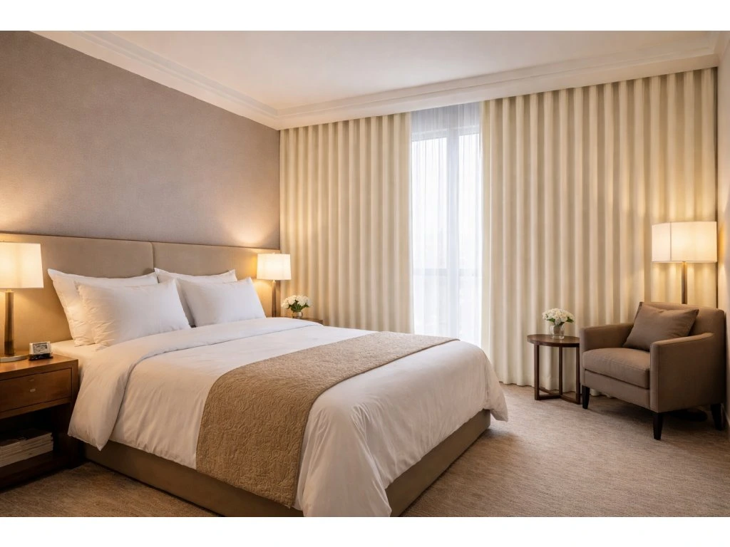 Díky oboustrannému provedení mají závěsy jednotný vzhled z obou stran, což je ideální řešení pro obytné interiéry, ložnice, hotely, apartmány i wellness prostory. Pastelové smetanové a béžové tóny působí jemně, opticky zvětšují prostor a snadno se kombinují s přírodními materiály i moderním designem.